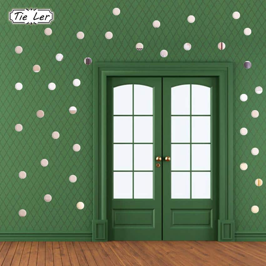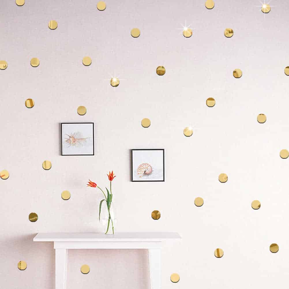 100 Pcs 3D DIY Acrylic Mirror Wall Sticker Round Shape Stickers Decal Mosaic Mirror Room Home Decor (Gold)