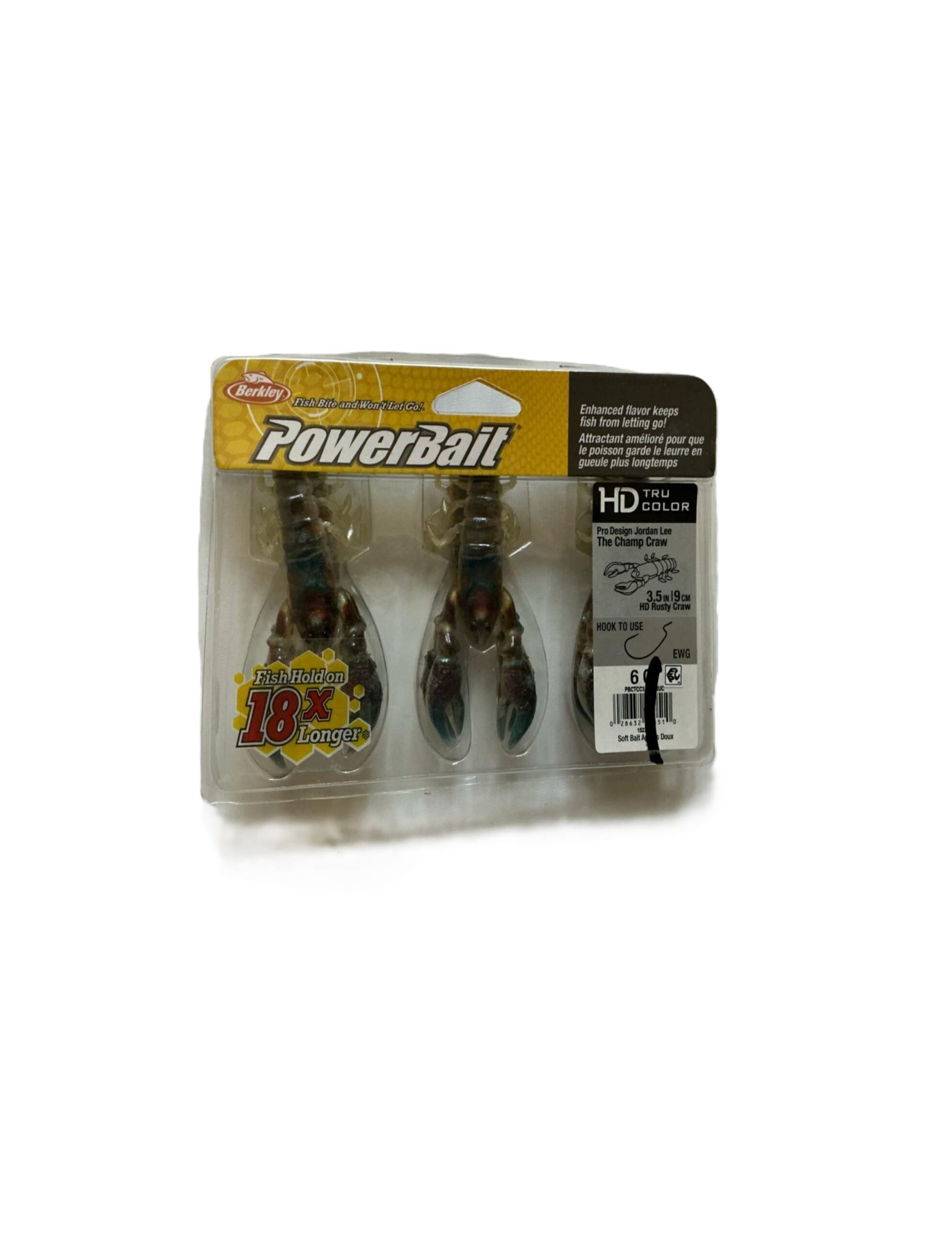 Designed by two time Bassmaster Classic® winner Jordan Lee, the Berkley® PowerBait® The Champ Craw features a lifelike profile and high-definition colors that mimic real bait. Its large claws float for more lifelike action.