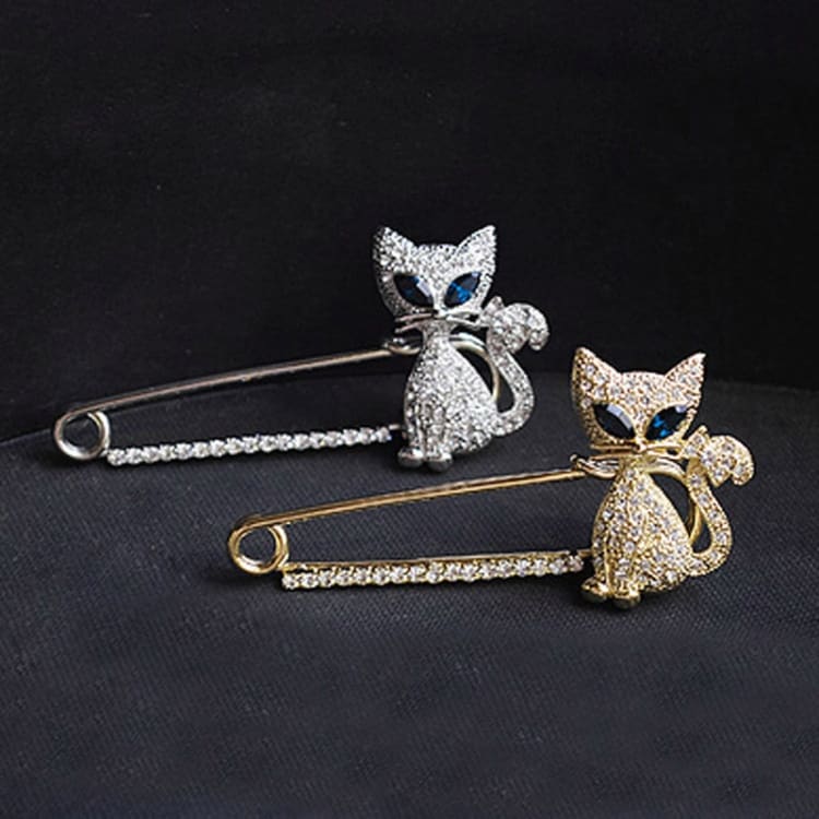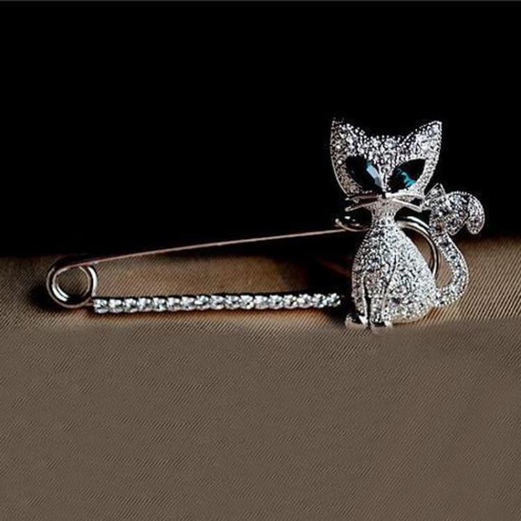 2 PCS Cute Green-Eyed Kitten With Drill Brooch(Silver)