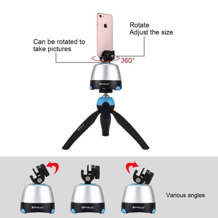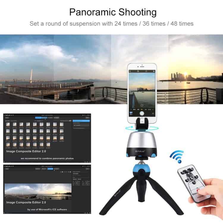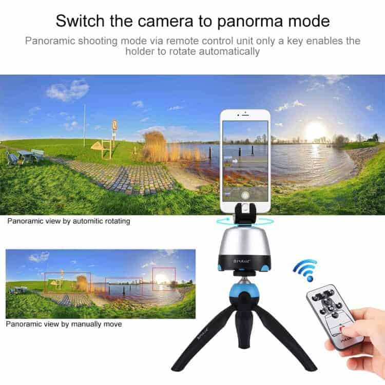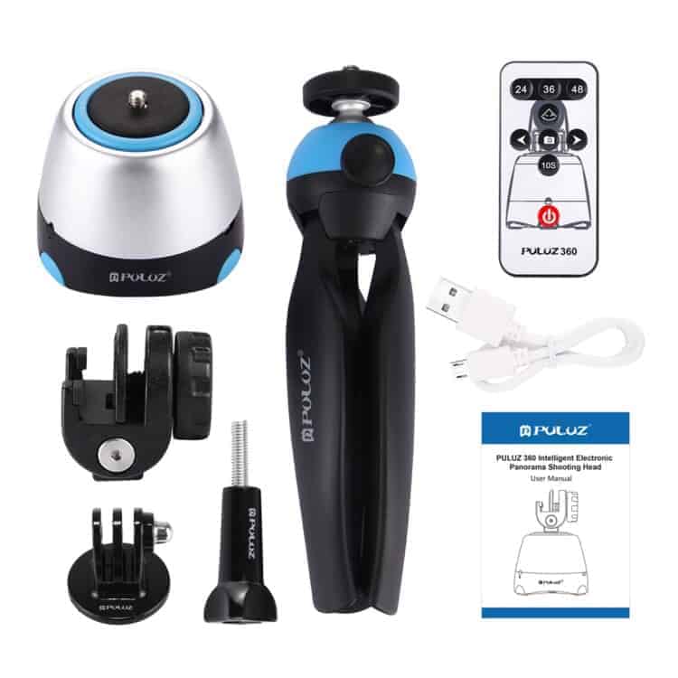360 Degree Rotation Panoramic Head + Tripod Mount + GoPro Clamp + Phone Clamp with Remote Controller for Smartphones, GoPro, DSLR Cameras from PULUZ Electronic (Blue)
