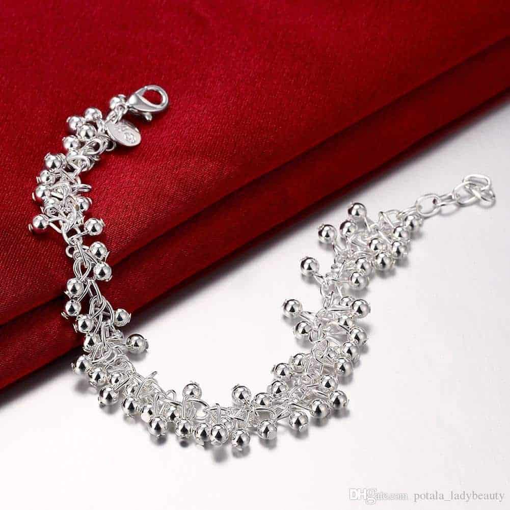925 Jewelry Silver Plated Lobster Buckle Grape Bracelet Bangle