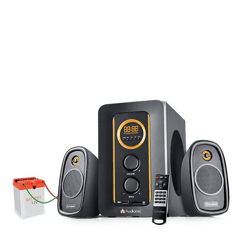 Audionic after numerous accomplishments and appreciations introduced new set of speakers and named them as AD-3500 which comes in 2.1 channel speakers. The uniqueness and distinctiveness of product can judged through its dual powered features that allow you to  play this speaker anywhere even without electricity or you can play this speaker from its wired input function. As far as its performance is concern, its 4 inches sub-woofer with three inches two satellites system maximizes your sound experience in any closed or open environment. You can also play your favorite audio tracks from its Bluetooth, USB Port, SD Card or Aux cable features. User is allowed to adjust/operate sound output level from its high frequency remote control feature or can manually control sound output level from manual analog buttons. Its transparent clear LED display with attractive artificial lights sheet enhances product beauty and features.
