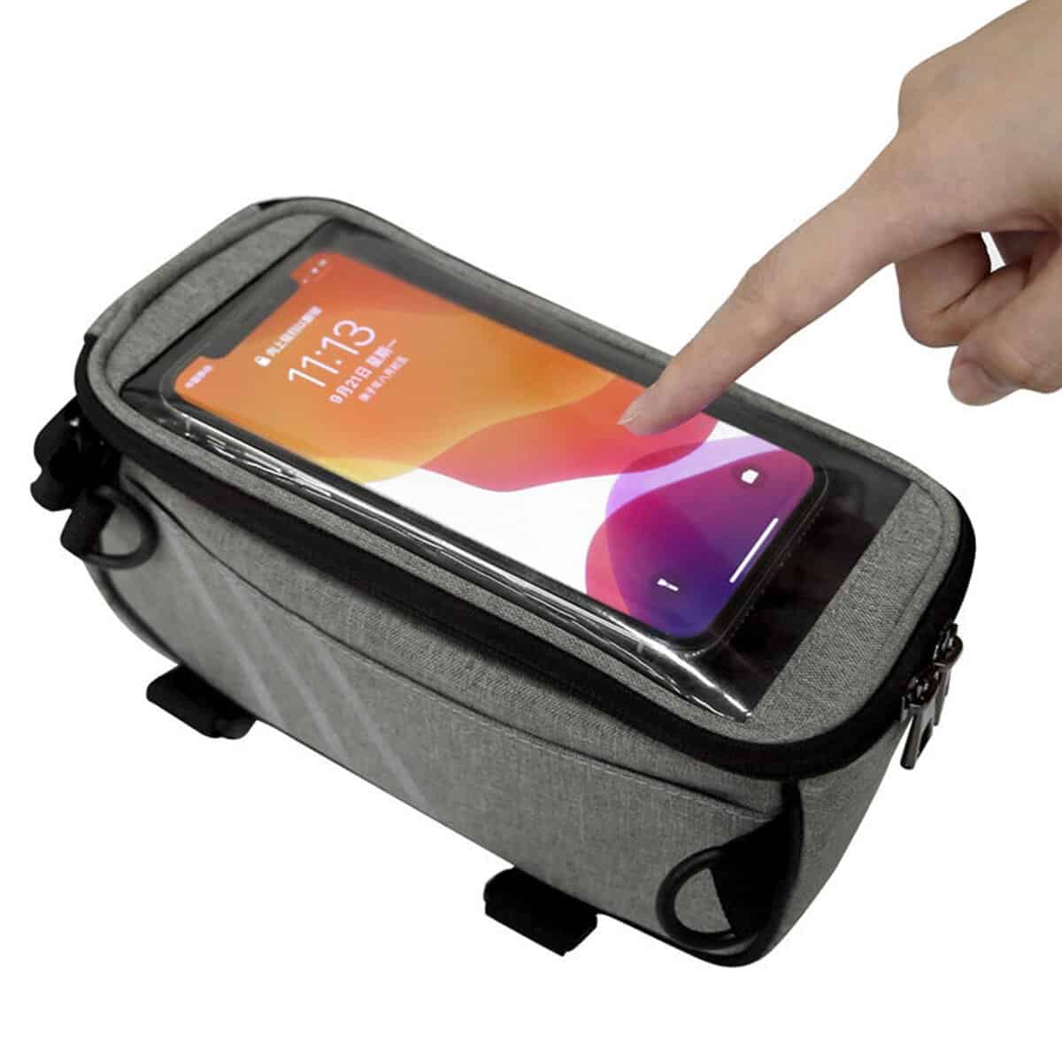 Bike Phone Front Frame Bag, Transparent Grey Bike Phone Pouch 600D Frosted Cloth High For Cycling
