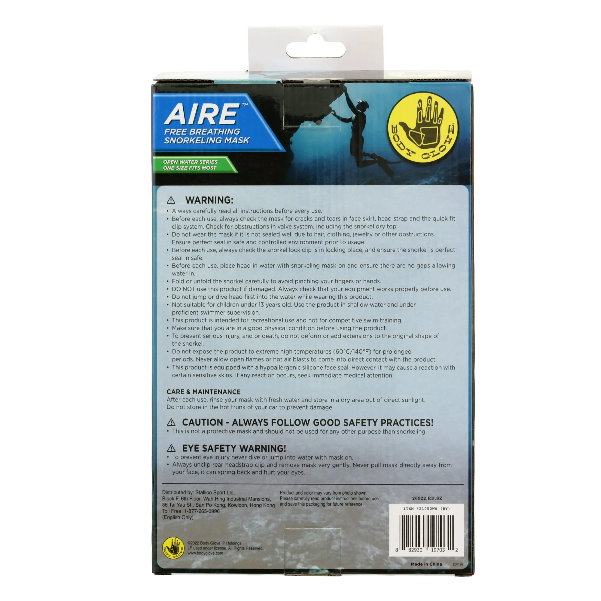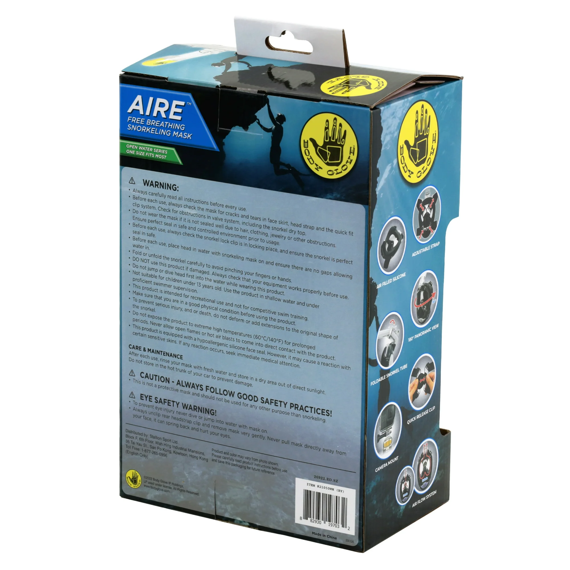 Body Glove Aquatic Aire Full Face Snorkel Wide Angle Diving Mask is perfect for your next snorkeling and diving ocean outing. The Aquatic Aire Snorkel Mask is designed with panoramic vision and a fog free system for a clear 180-degree panoramic view. Never deal with fog again with a clear scratch wide angle resistant lens. Air-Filled silicone cushioning seal, dry-top snorkel, GoPro camera mount and comfortable adjustability allows you to focus on important things while you are in the water.