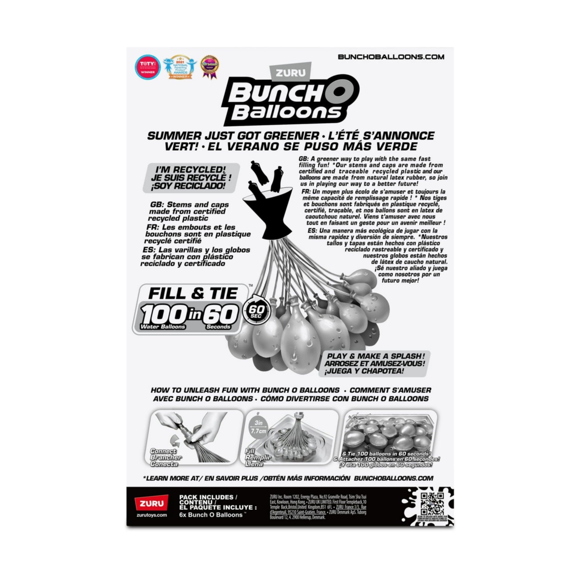 Get ready to party, with Bunch O Balloons Tropical Party Water Balloons! Fill and Tie 100 Tropical Party balloons in less than 60 seconds with these self-tying water balloons! With innovative O-ring technology and rapid fill capabilities, say goodbye to the stress and mess of filling individual water balloons and say hello to never ending splash out loud fun! Simply connect to a tap or hose, fill, and make hundreds of water balloons with no hand-tying. Take them to a pool party, to your backyard, to a barbecue, or any summer occasion to unleash summer fun no matter where you are! This pack includes 6 x Bunch O Balloons Tropical Party Stems (total 200+ Self Sealing Water Balloons). Summer’s too short, make sure you spend it having splashing, refreshing fun!