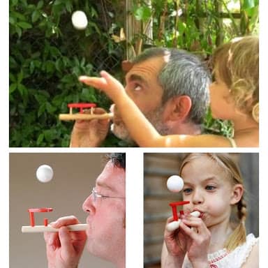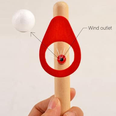 2. Blowing hard,the blow blew against the ball and kept it from falling, very funny.