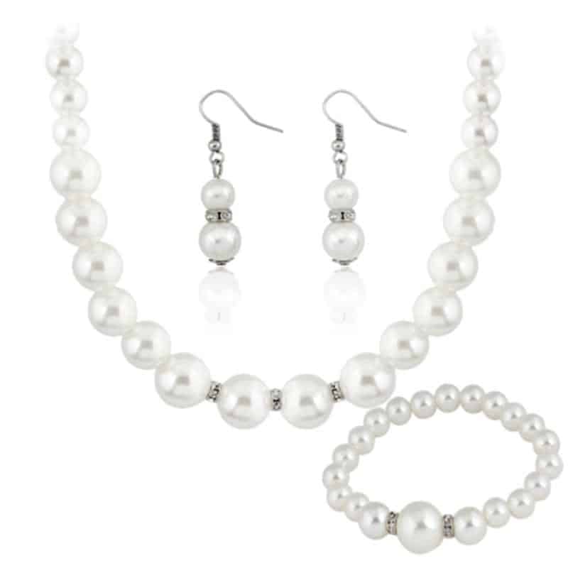 Classic Imitation Pearl Silver Plated Clear Crystal Jewelry Sets