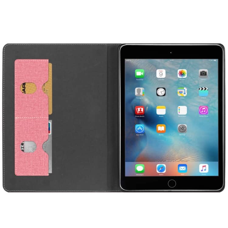 Cloth Pattern PU Case for iPad 9.7 inch (2018) & (2017) & (2016) & iPad Air 2 & iPad Air, with Card Slot & Pen Groove (Pink)