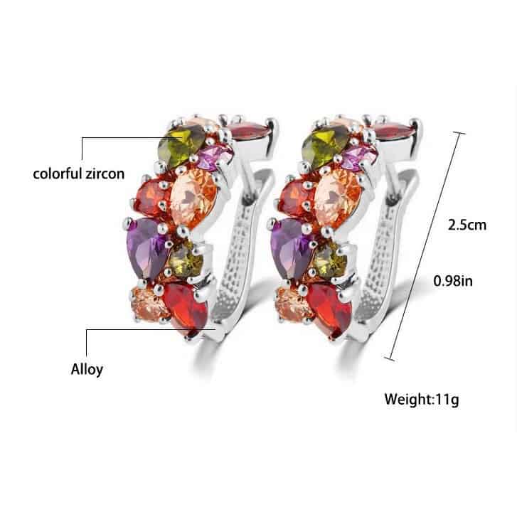 Colorful Zircon Earrings Stud Jewelry For Women And Girls (Silver)
