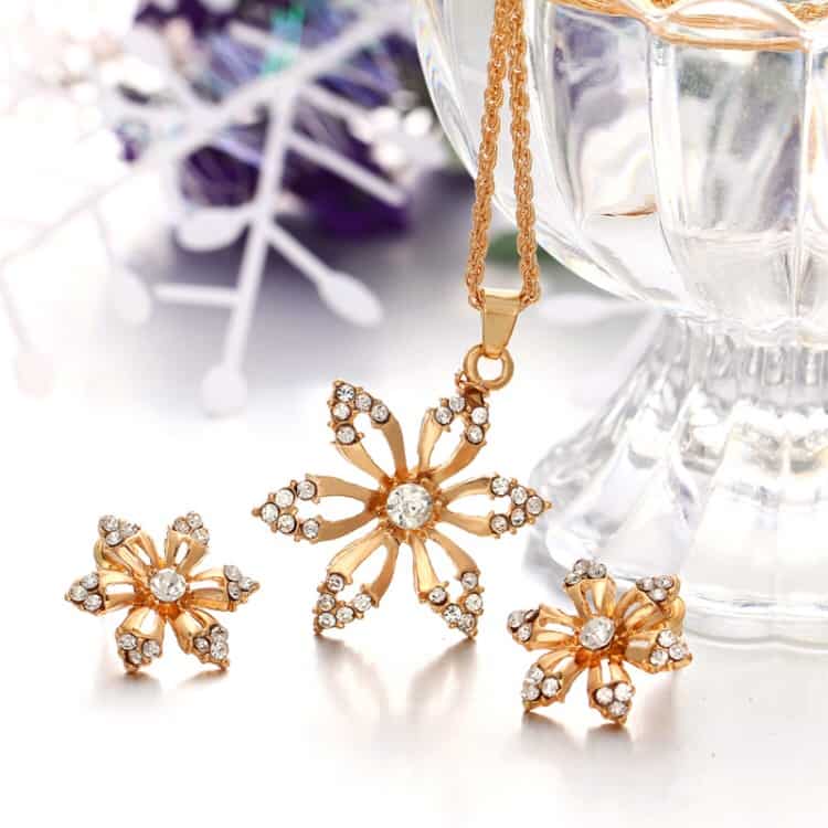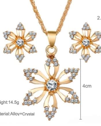1.Size and weight: chain girth 50cm+6cm, pendant 4×4cm, earrings 2.6×2.6cm and weight about 14.5g. 2.Material: alloy, crystal. 3.Applications: tourism memorial, wedding, employee benefits. 4.Others: only for woman.