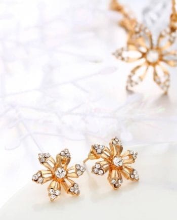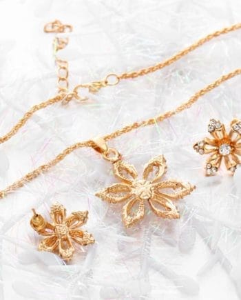 Diamond-shape Flower Bridal Necklace Earrings Three-piece (Gold)