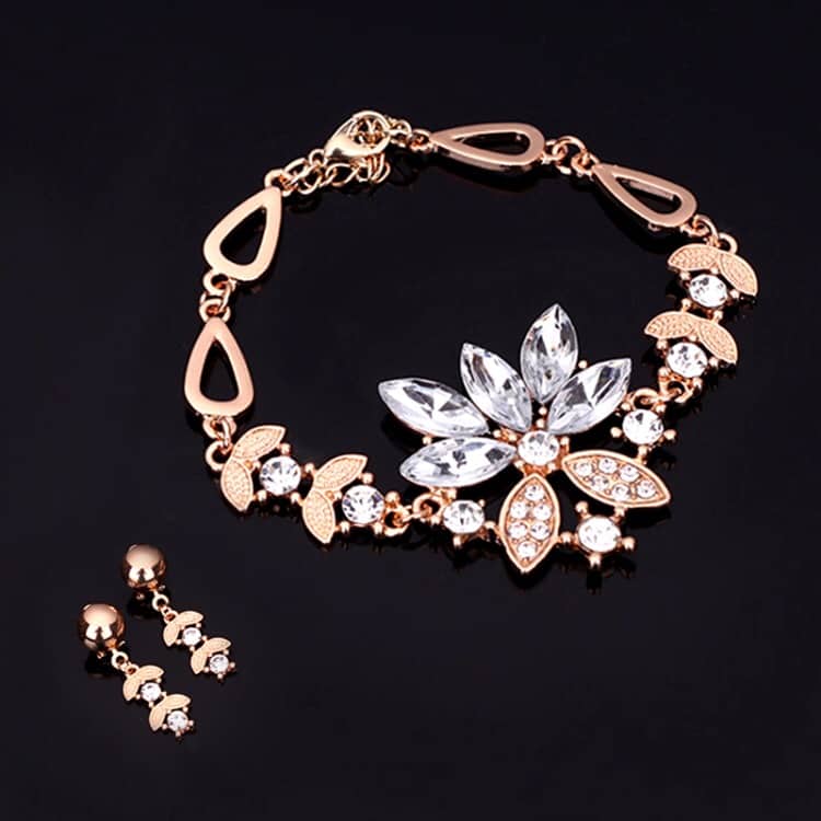 Fashion Diamond-shape Leaves Flowers Bracelets Earrings Jewelry 2 PCS Set for Women (White)Â