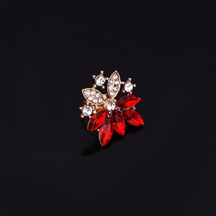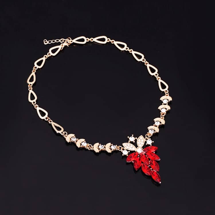 Fashion Diamond-shape Leaves Flowers Necklaces Rings Jewelry 2 PCS Set for Women (Red)
