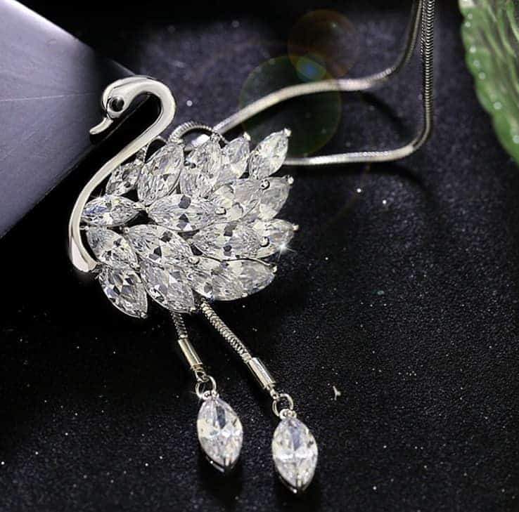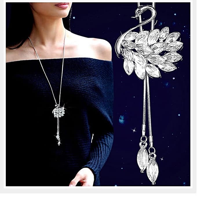 Fashion Sweater Chain Drop Zircon Goose Long Necklace Sweater Accessories Femininity Pendant Tide(White)