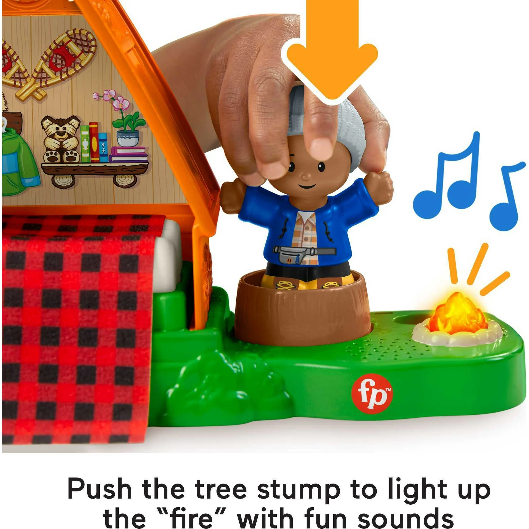 - Kids can create their own fun camping stories with this cabin electronic playset