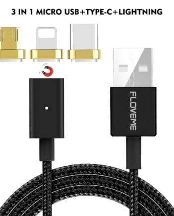 FLOVEME 3 in 1 2.4A 1m Nylon Weave Style 8 Pin + Micro USB + Type-C Magnetic Data Sync Charging Cable (Black)