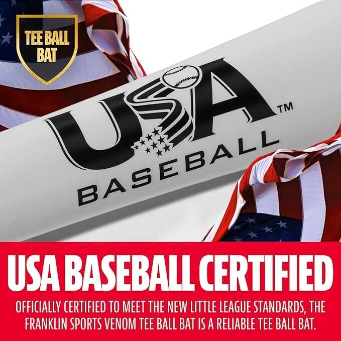 - USA BASEBALL CERTIFIED – Officially certified to meet the new Little League standards, the Franklin Sports Venom Tee Ball bat is a reliable tee ball bat. Designed for Soft Core Tee Balls, this youth tee ball bat is sure to become a favorite.