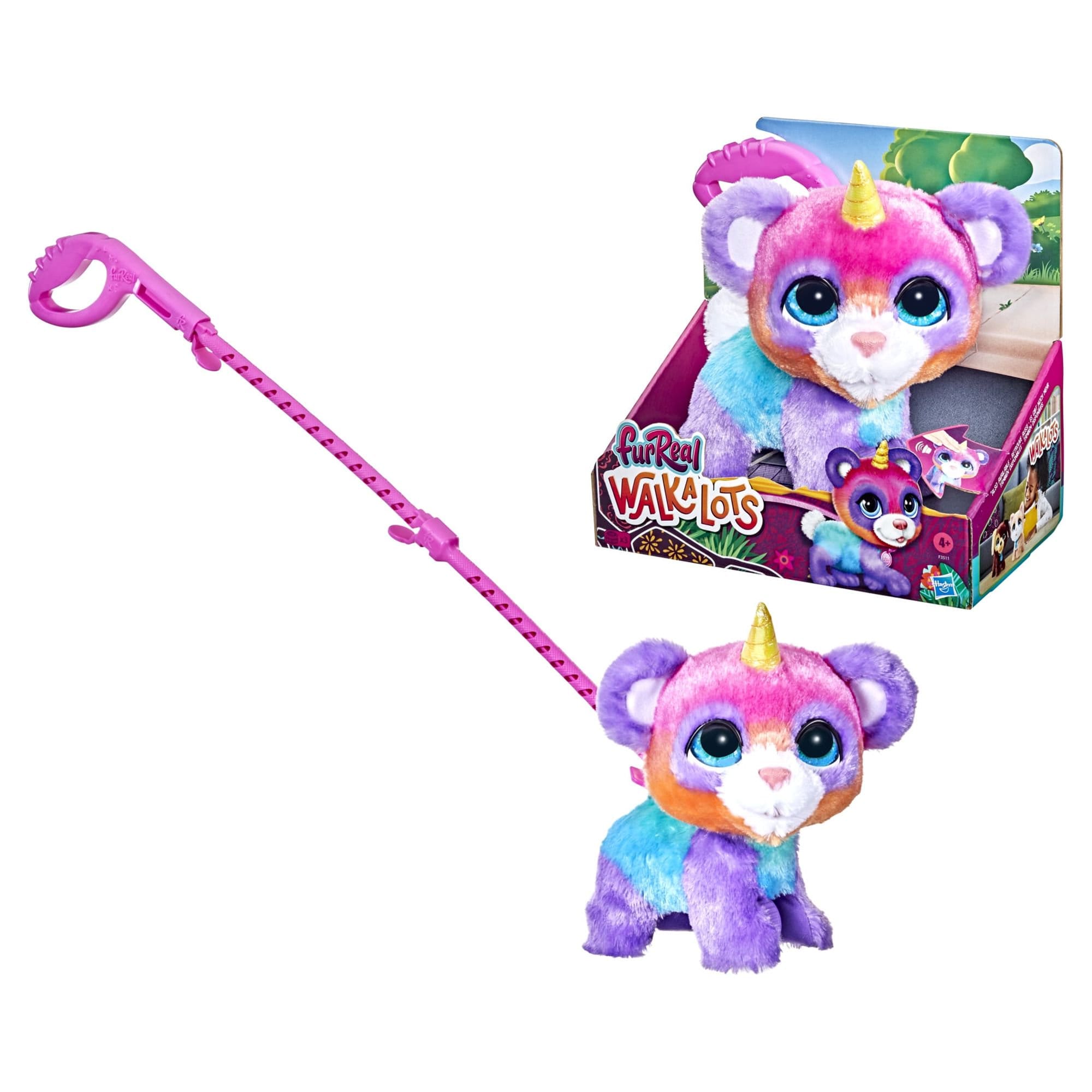 Pet walkers wanted! The furReal Walkalots Pandacorn Plush Interactive Toy is an adorable animatronic pet that kids can walk. This cuddly, multicolor fantasy pet comes with a two-part detachable leash to walk her across the floor. Push her along by her leash, and she’ll move forward with her wobbling head and signature bouncy walk. She also makes pet sounds and other fun noises, making the walk that much more exciting for kids ages 4 and up. Shall we take a stroll around the house? Sounds like fun!