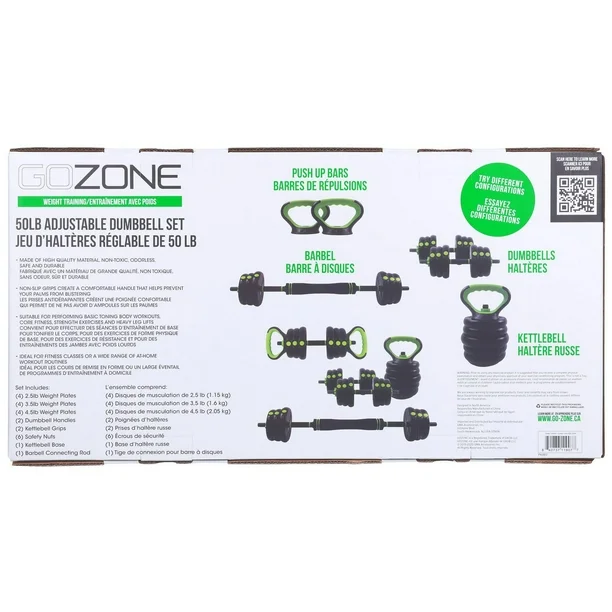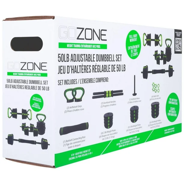 • The GoZone 50lb multi-use weight set is an all-in-one set that will turn any room in your house into a versatile home weight room