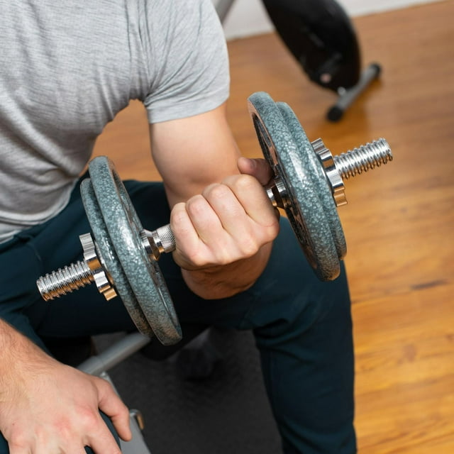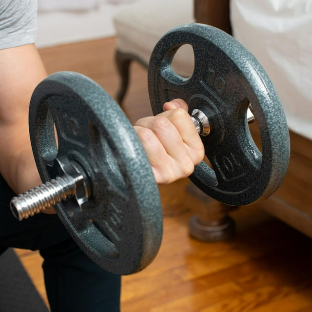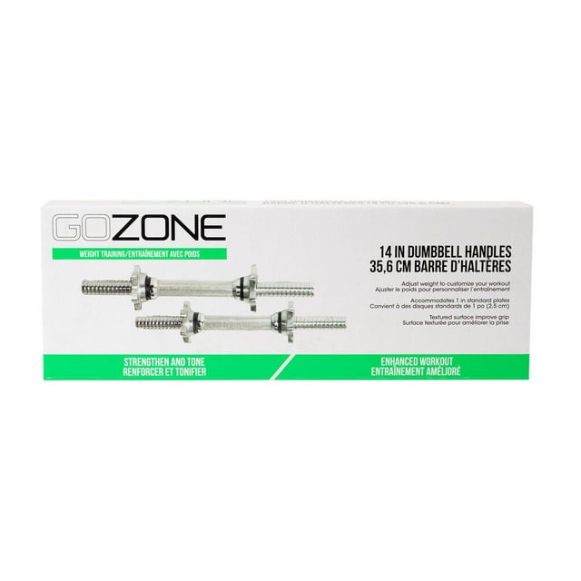 Build muscle at home with GoZone standard 14” dumbbell handles. This pack of 2 handles is must-have equipment for any home weight room. Work out with the handles alone, or add some weight plates (not included) for a workout that will pump you up. A basic weightlifting accessory that can grow with you as you get stronger, these high-quality silver dumbbell handles are perfect for beginners, intermediate-level, and experienced weightlifters. Reach your fitness goals with well-made equipment that you can depend on. GoZone – From your first step to your next rep.