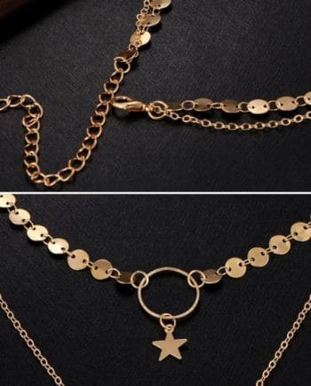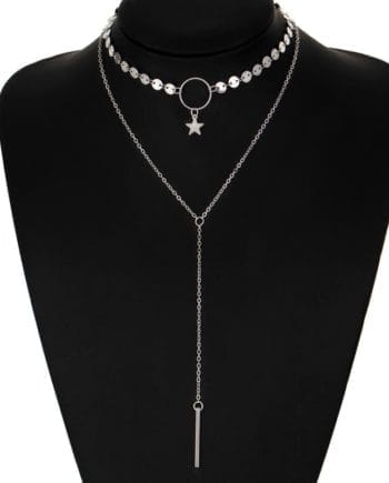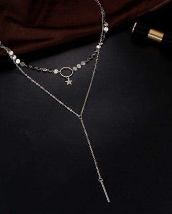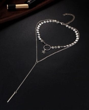 Handmade Sequins Star Tassels Circle Clavicle Chain Long Pendant Double-layer Chain (Silver)