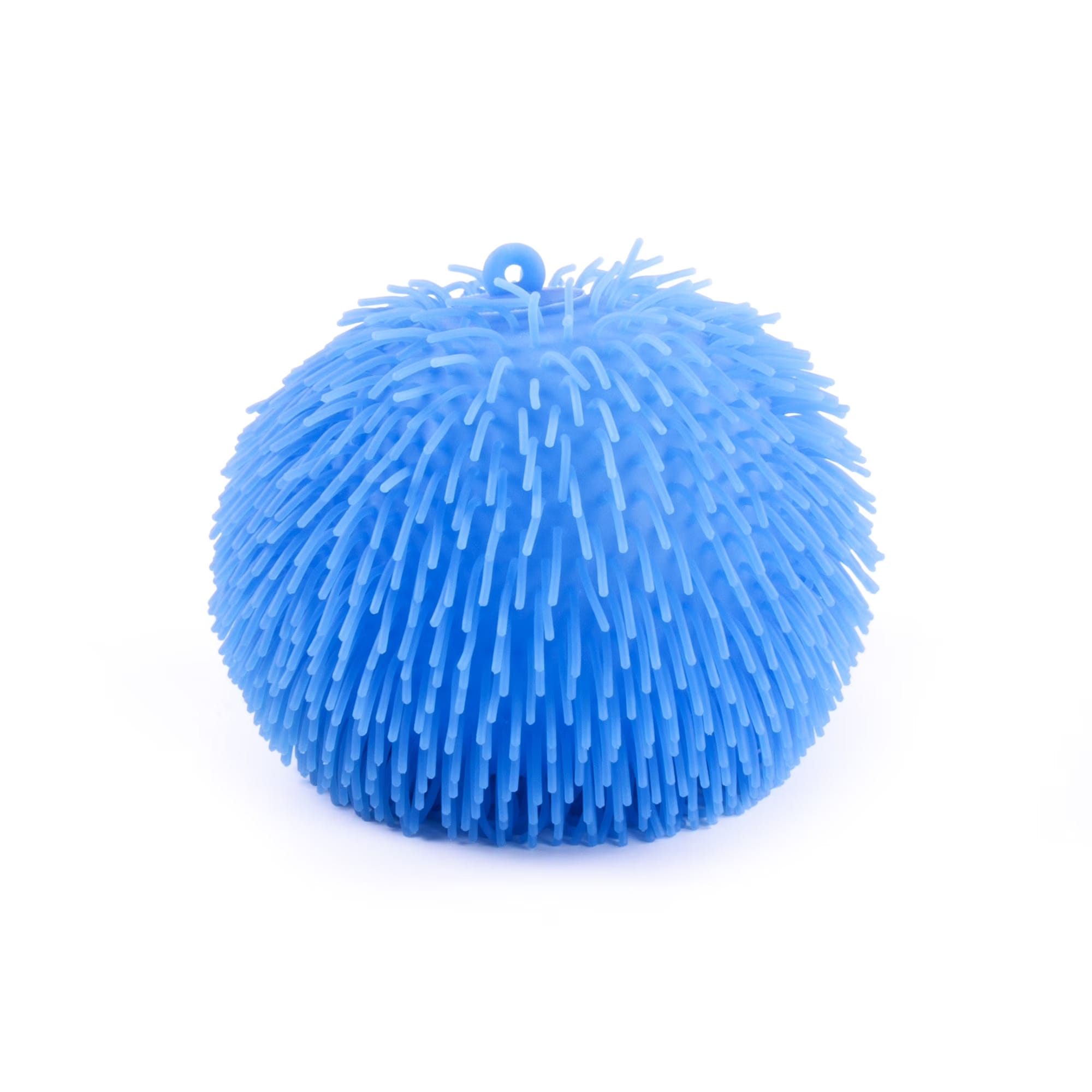 Also described as air-filled textured sensory ball with stretchable material and sealed air inside.