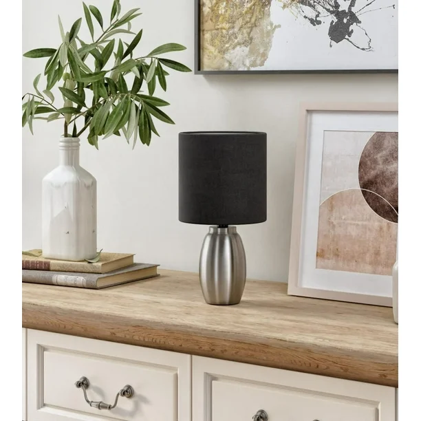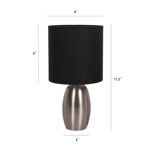 Make any space brighter with HOMETRENDS Accent Lamp. Its charming and practical design features a steel lamp base with a dark pewter plated finish and textured black fabric shade. The ideal balance between style and function, this lamp also has a push-through switch to quickly and easily turn the light on and off. From bedrooms to offices, living rooms and bedrooms, it’s the perfect fit for any space, whether you’re lighting up your home desk or your bedside table.