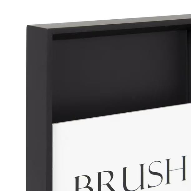 Add instant charm to your bathroom with the Hometrends Brush Your Teeth Dimensional Wall Art. The deep angled frame and raised inner plaque along with the black and white color contrast makes this art stand out on your wall! Plus, the color scheme allows it to complement a variety of home decors. This art plaque adds visual interest to your bathroom décor and the artistically printed sentiments serves as a fun reminder for children or other guests to brush their teeth so you don’t have to. And, it’s the perfect size for hanging above a countertop or towel bar.