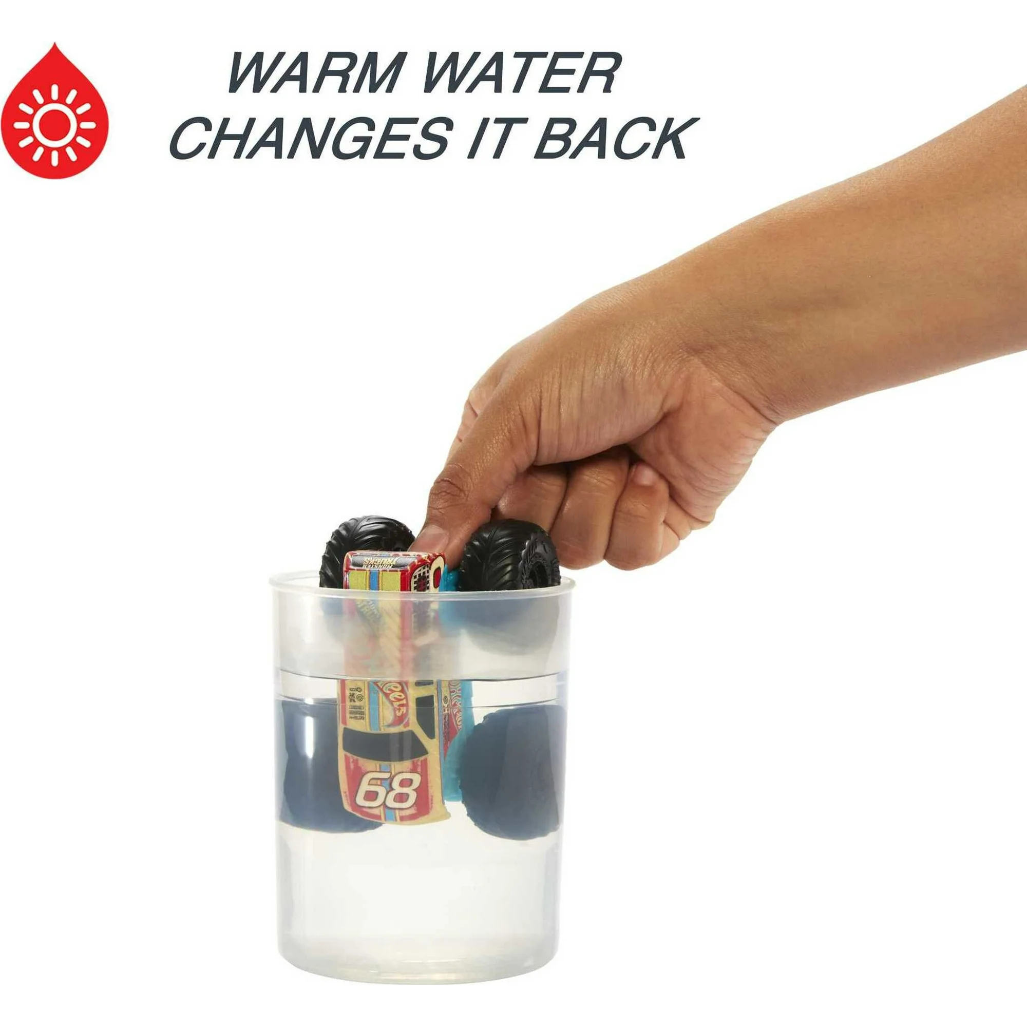 - Use the crushed car water blaster to spray other Hot Wheels Monster Trucks Color Shifters with temperature-appropriate water to change-up their decos!