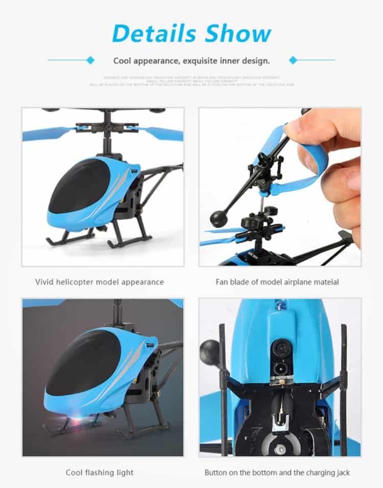 2. Turn on the helicopter and holding it for 3 seconds, it will start automatically