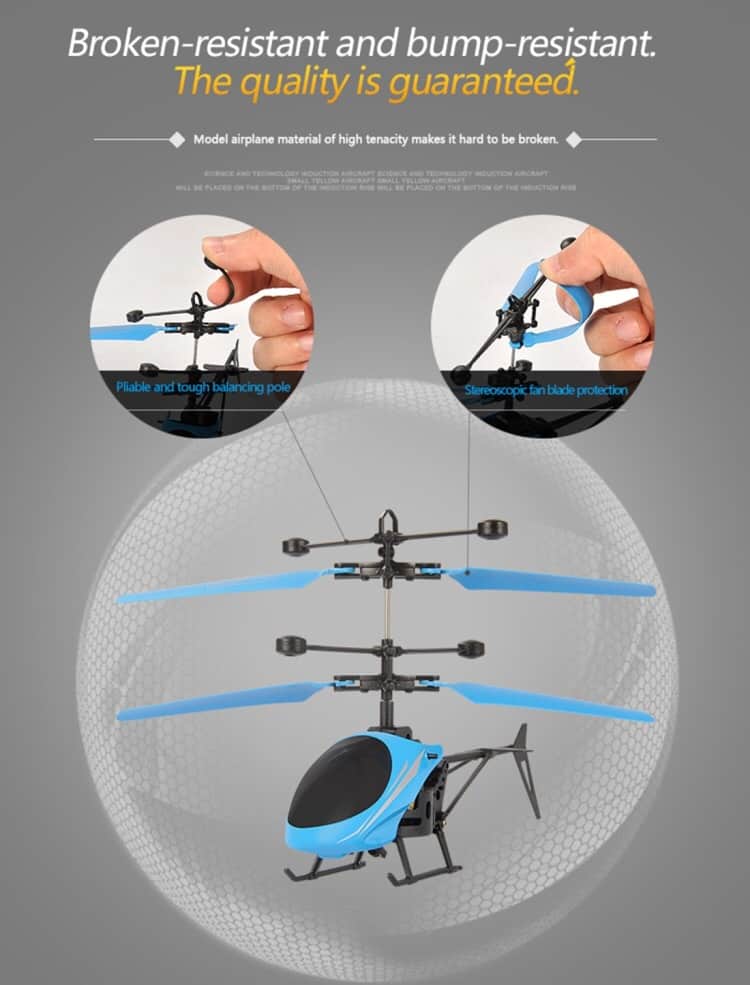 3. The helicopter will fall after reaching certain height, it will fly up after sensing object underneath it