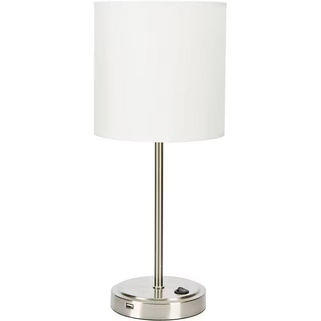The Intertek Grab and Go Stick Lamp, sophisticated design that brings brightness and class to your area.  A sleek metal base is included with a white satin finish lampshade composing for a timeless addition to your home or office area. Perfect for your home accent tables, bedside tables, office desks, and more, The small light will take up minimal space leaving room on your desk for a laptop and pens or on your small bedside stand.
