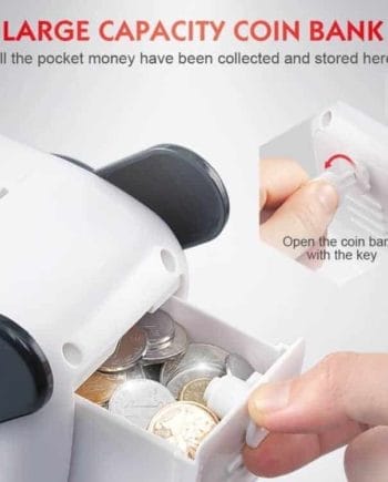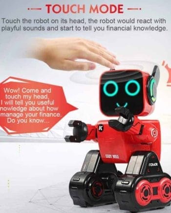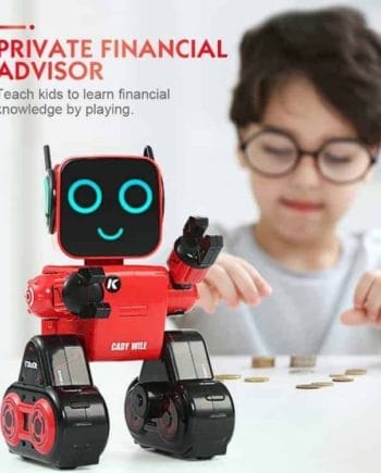 The robot makes funny sounds and he can popularize some financial tips, and nowadays we are using this for keeping his coins