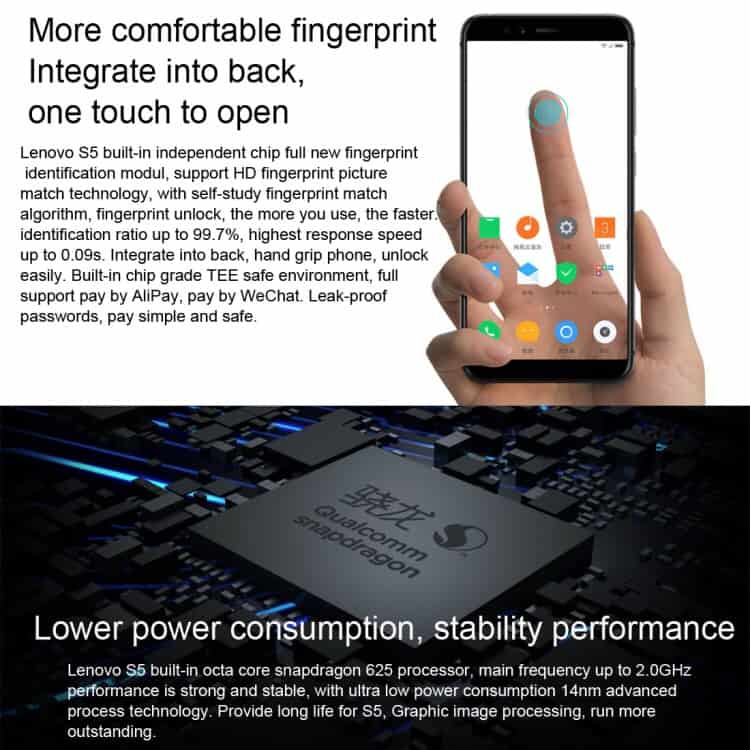 1. Qualcomm Snapdragon 625 Octa Core up to 2.0GHz CPU, high performance and low power consumption, run fast, operate smoothly. 2. 5.7 inch 2160*1080 pixel 18:9, capacitive screen, multi-touch, clear and vivid. 3. 13.0MP + 13.0MP dual rear cameras, capture the wonderful moment, take the high quality picture. 4. Powered by 3000mAh high capacity battery, long life to use.