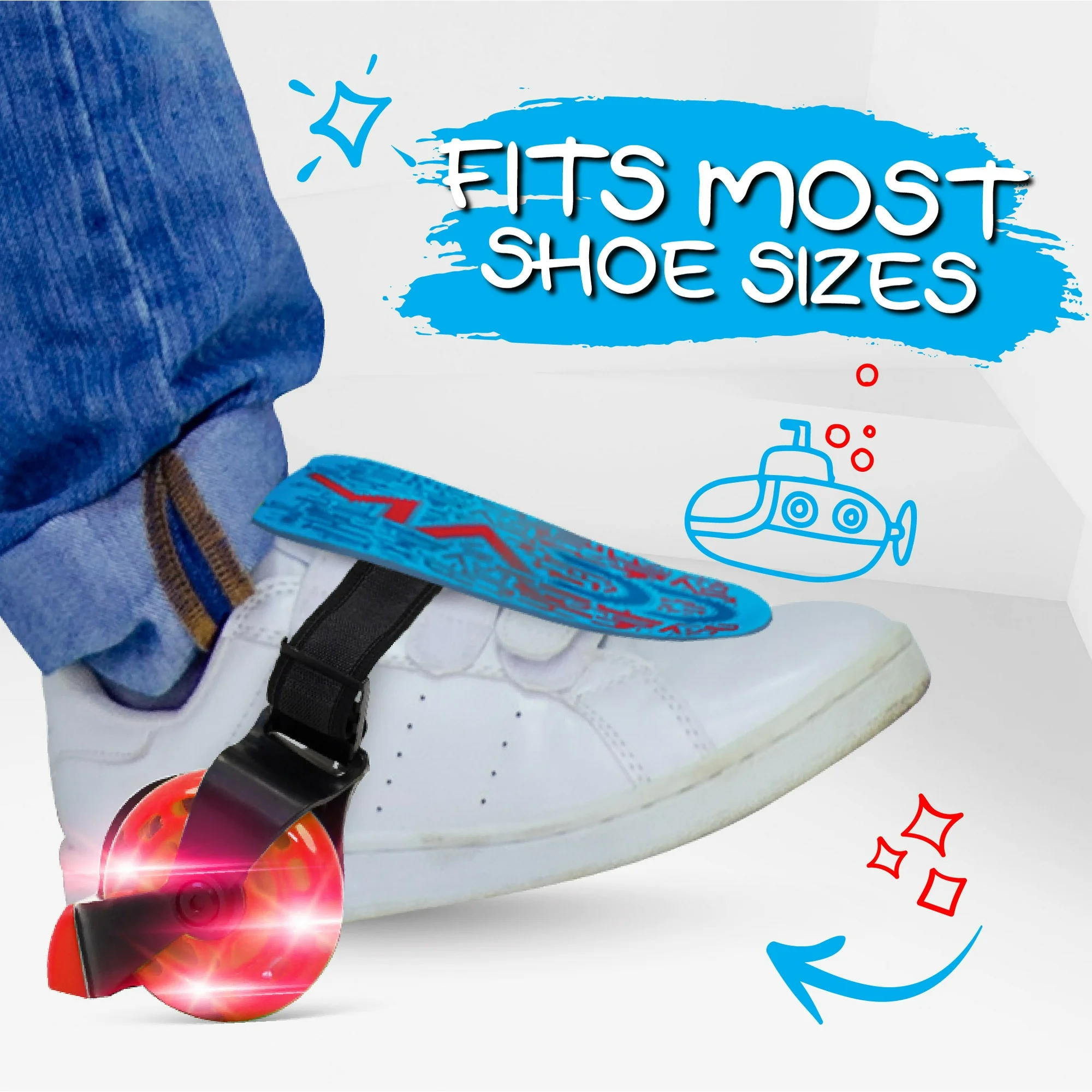 The Madd Light-Up Rollers are ready to turn your ordinary shoes into awesome roller skates in seconds! Fully adjustable to fit most shoe sizes yet less bulky than regular roller skates, the Madd Rollers can turn any situation into the most amazing adventures! Blaze a trail and light-up your path with the innovative motion activated LED light wheels that omit an awesome glow as you roll!