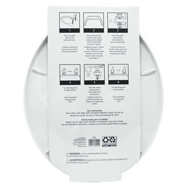 Mainstays MS Round White Plastic Toilet Seat, Easy Clean