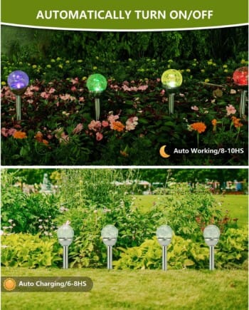 The outdoor solar garden lights will change color automatically, it is perfect for your garden, backyard, patio, fence, lawn, walkway, pathway and driveway decoration.Warm Reminder: