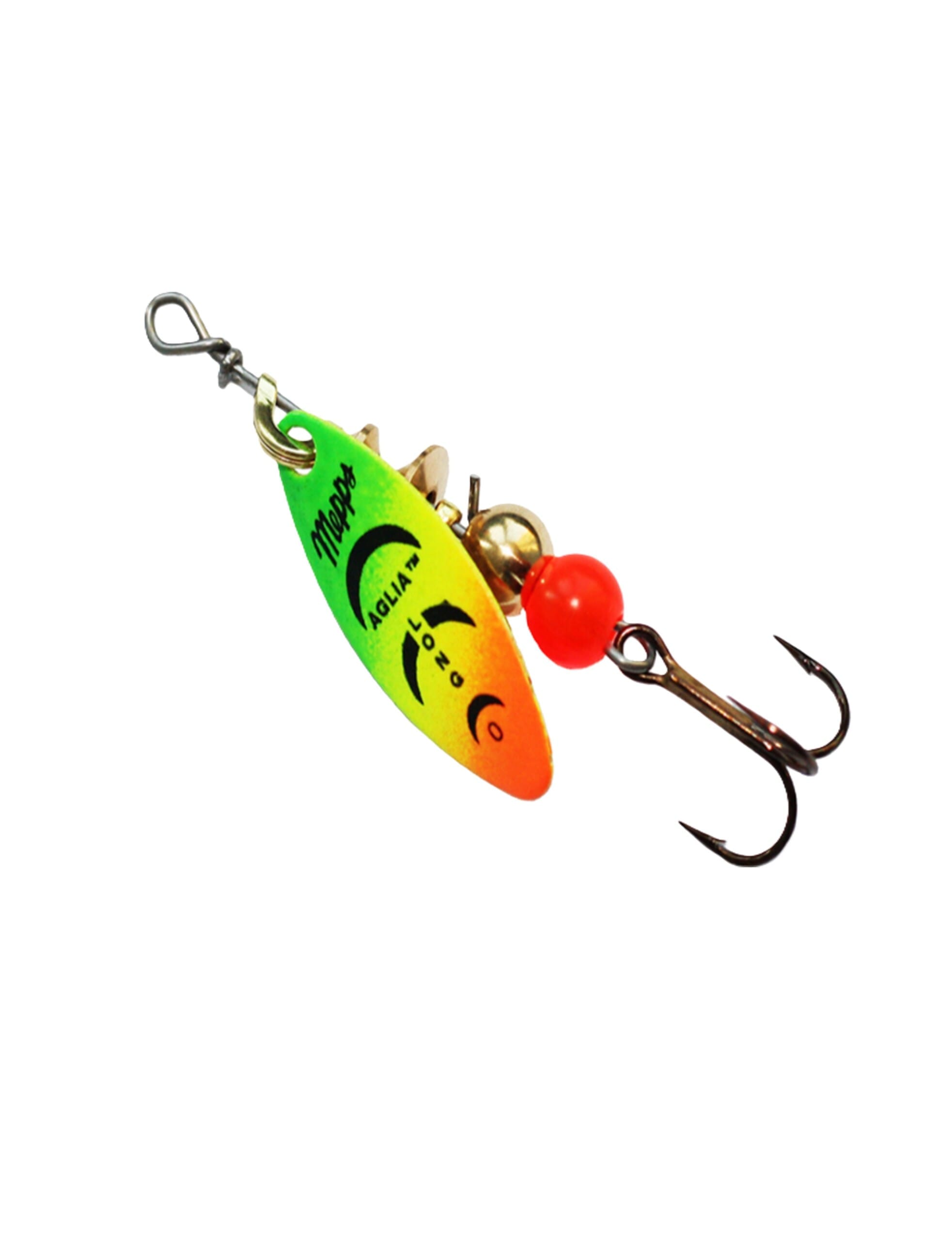 The name of the bait is due to the oblong shape of the petal, which has a deviation from the axis of rotation of 30 ° and a small frontal resistance. In fairness, it should be noted that it changes somewhat, depending on the wiring speed. It is this feature, that is, a very wide range of permissible speed of movement, at which the impeccable operation of the spoon is maintained, and is the main secret of the record catchability of AGLIA LONG. Experienced anglers know how important it is to get used to the spoon, having found the most advantageous mode of its wiring. Here, AGLIA LONG is beyond competition, it forgives significant mistakes made by beginners. Due to its slight “stubbornness”, lures of all sizes are suitable for fishing with the wiring against the current. At the same time, even on a lake, where a slow movement of the lure is often required, MEPPS AGLIA LONG will provide you with excellent fishing.