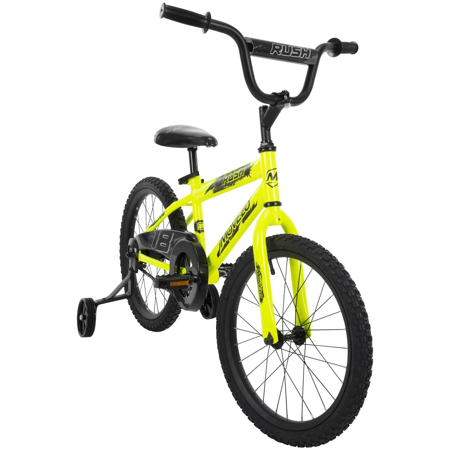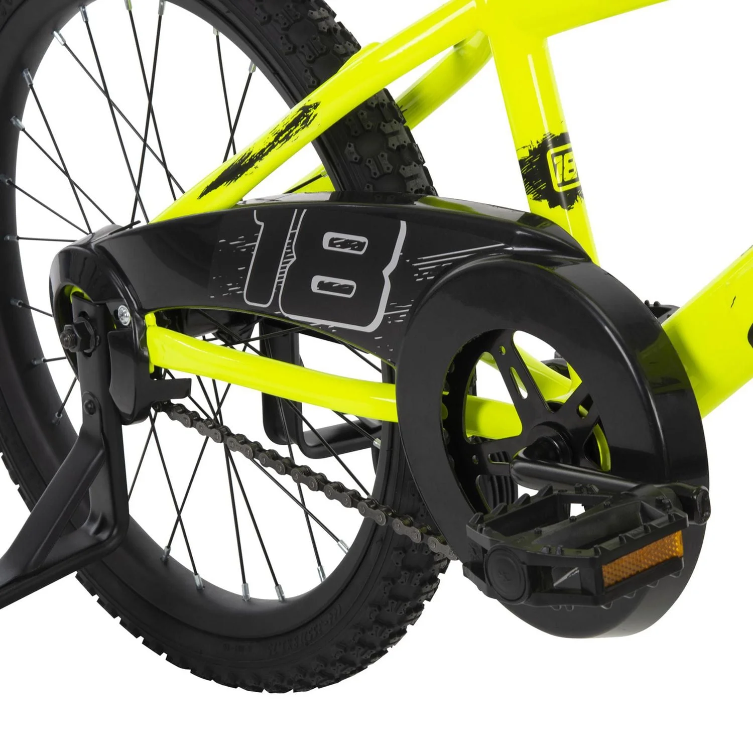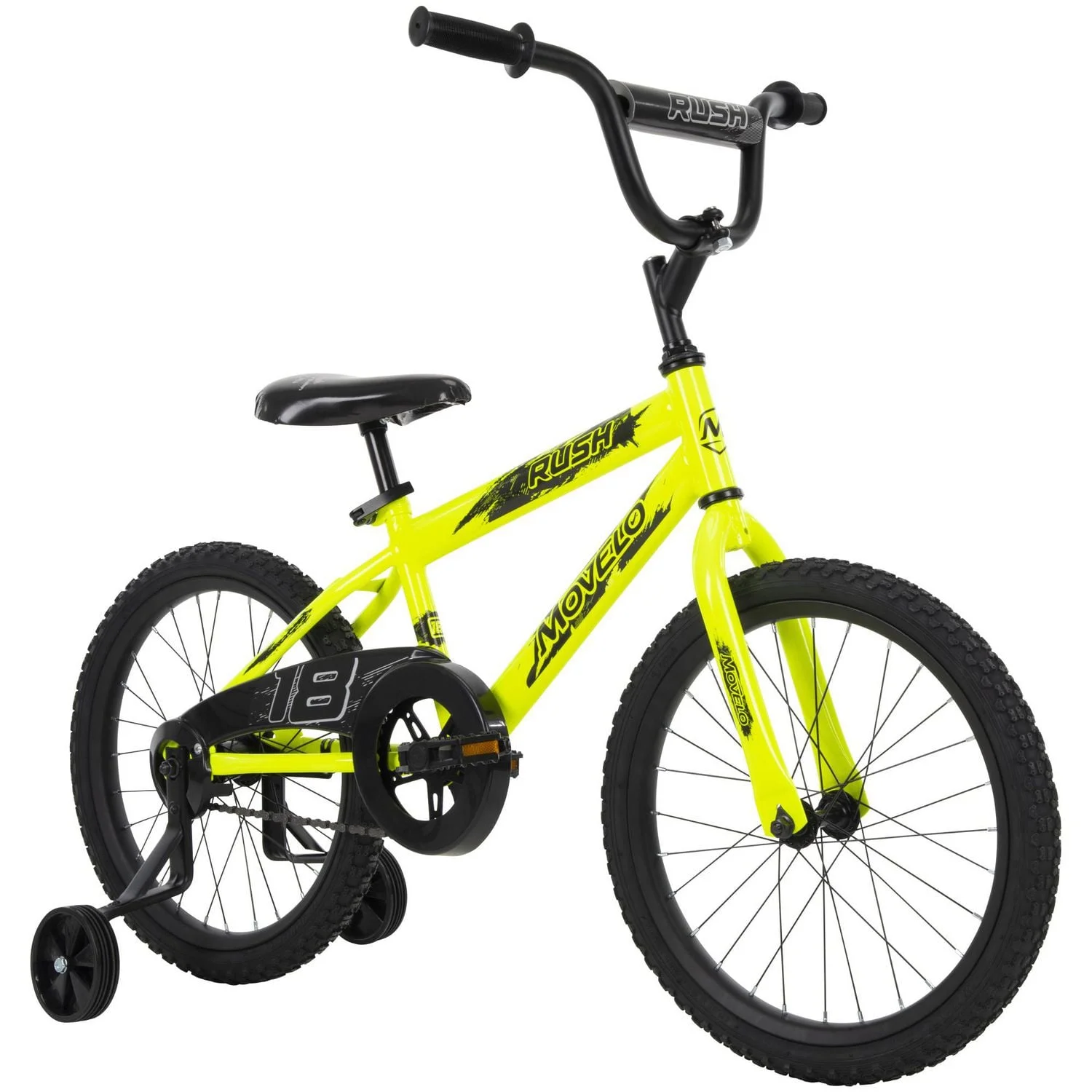 This 18-inch Movelo Rush bike with a neon yellow frame is ready for action. Your child will feel excited to ride this super-cool bike. This 18-inch bike for boys is great for your child who is growing in confidence with bike riding. The removeable training wheels that come with the bike pair with the easy-to-use coaster brake to give your child great control. Sidewalk rides will not be boring any longer – get ready for races and many fun memories with this Movelo Rush boys’ bike. With this bike, your child is preparing to become a true adventurer. From Huffy, We Make Fun.