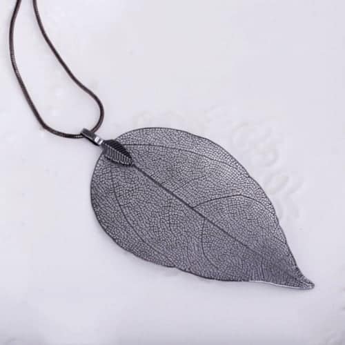 Necklace Filigree Long Bohemian Unique Natural Leaf Pendant Delicate Women Jewelry (Black)