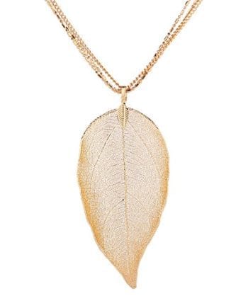 Necklace Filigree Long Bohemian Unique Natural Leaf Women Jewelry (Gold)
