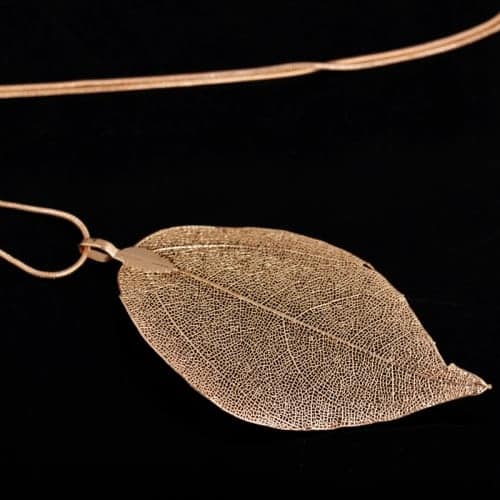 Necklace Filigree Long Bohemian Unique Natural Leaf Pendant Delicate Women Jewelry (Gold)