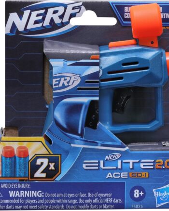 The compact Nerf Elite 2.0 Ace SD-1 blaster is ideal for all missions and battles. The handy size of this toy blaster allows quick fun when it comes to delivering an exciting battle outside. The small Nerf blaster is ready to use almost anywhere to launch a spontaneous and surprising attack. It has an integrated storage option for 1 dart so that a second dart is within easy reach for quick reloading. It comes with 2 Nerf Elite darts. Ready to use in 3 simple steps: simply insert 1 dart into the barrel from the front, pull the lever down and press the trigger to send the dart through the air. Children’s toys such as Nerf Elite Blaster are great gifts for boys and girls aged 8 and up who like to be active. Glasses are recommended not included. Nerf and all related features are trademarks of Hasbro.