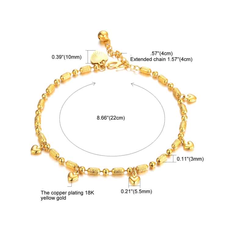 Description: 1. Brand: OPK 2. Material: Copper 3. Style: Women 4. Style: simple and fashion 5. Mosaic material: not inlaid 6. Modeling: anklet chain 7. Applicable gifts occasions: wedding 8. Color: gold 9. Process: Plating 10. Type: Anklet