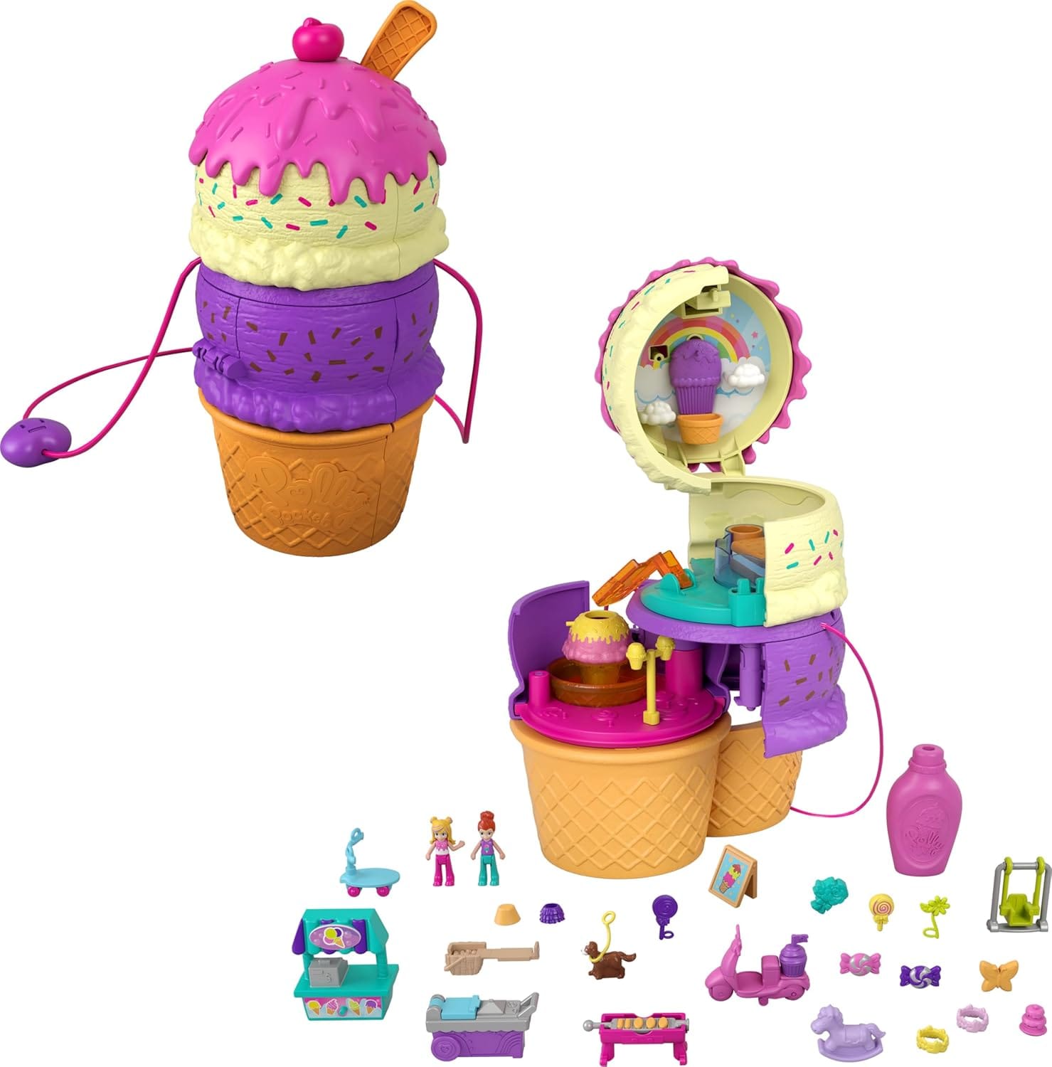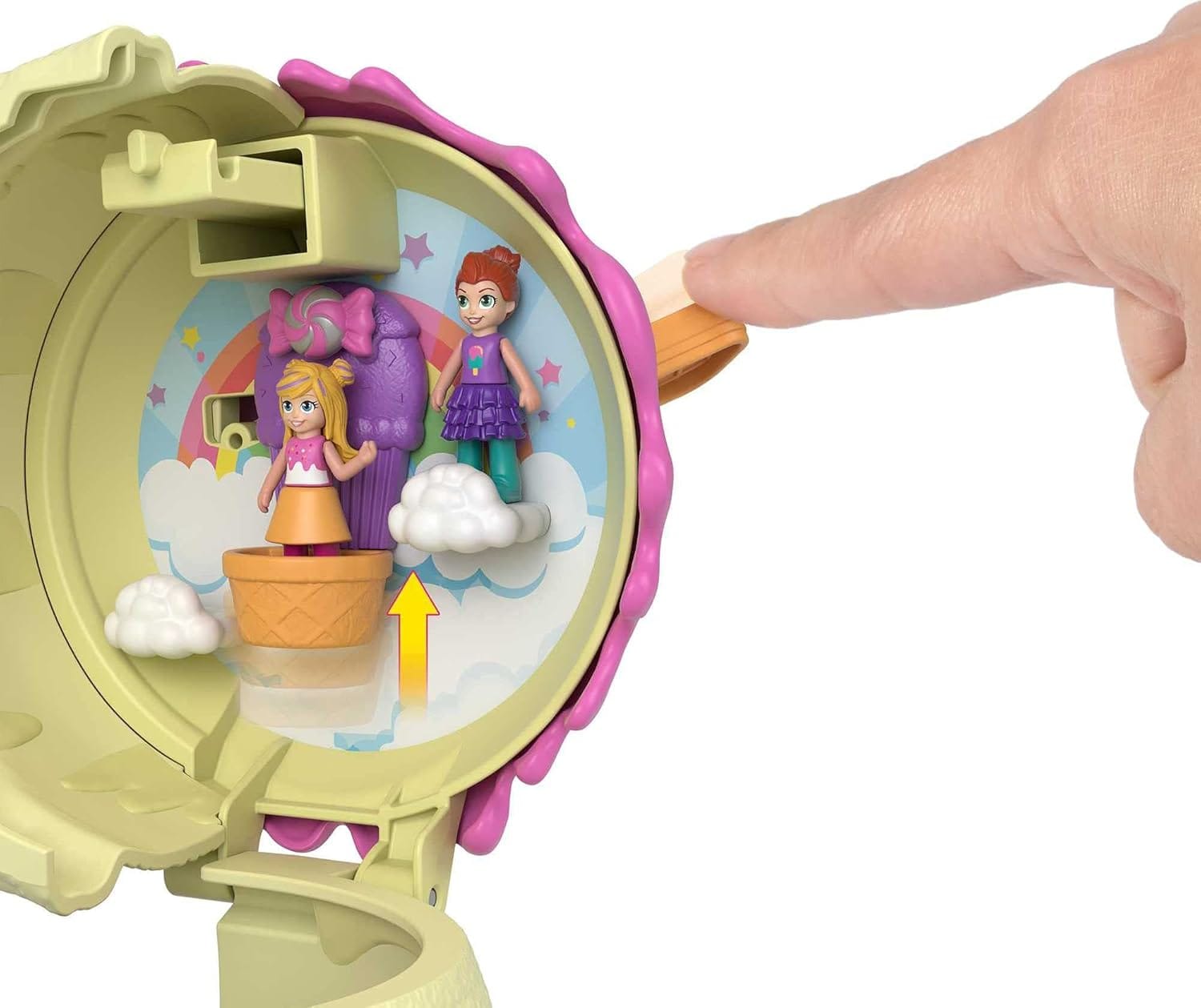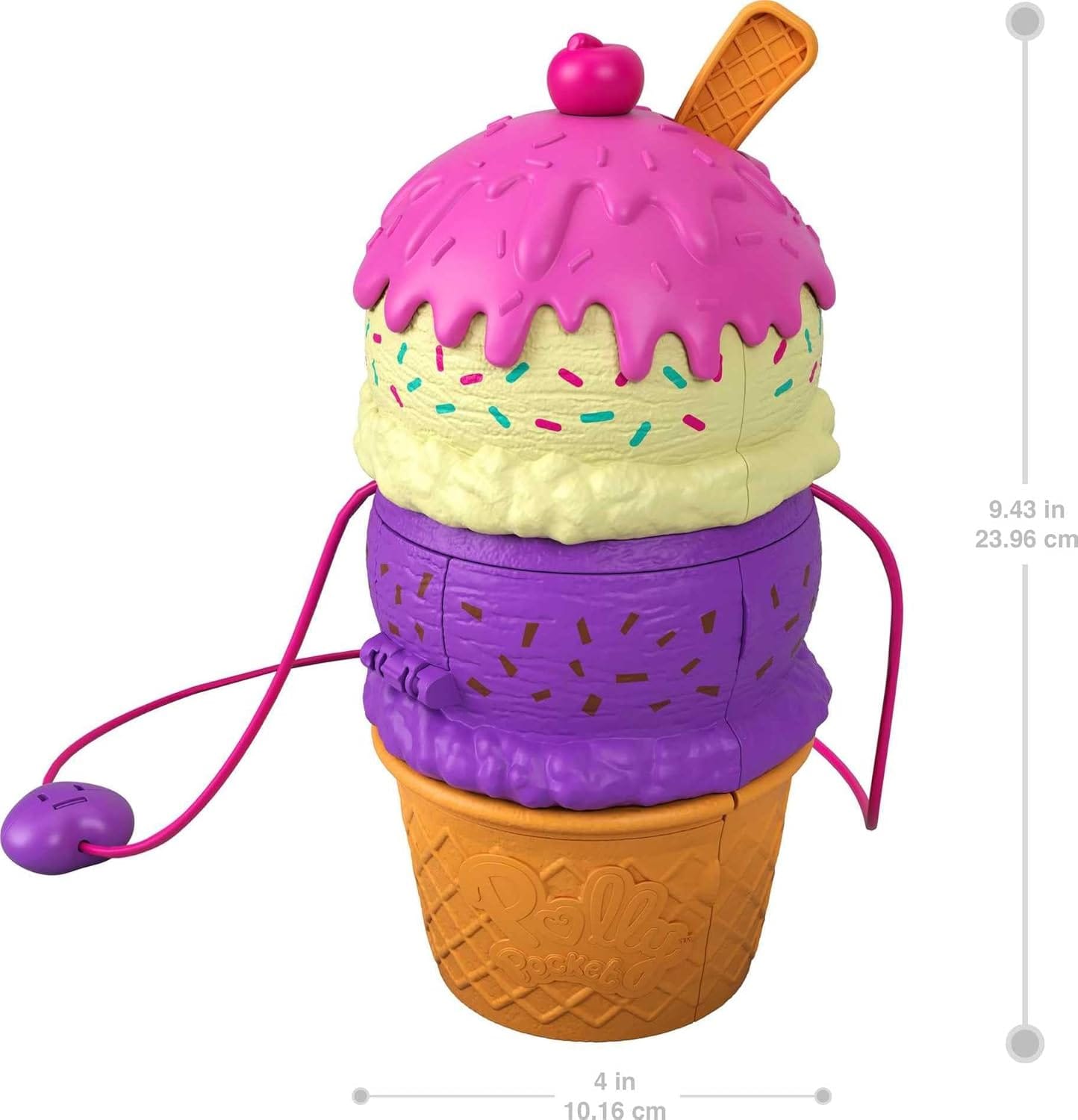 Polly Pocket Spin ‘n Surprise Compact Playset, Ice Cream Cone Shape, Playground Theme, 3 Floors, 25 Surprise Accessories Including Micro Polly & Lila Dolls