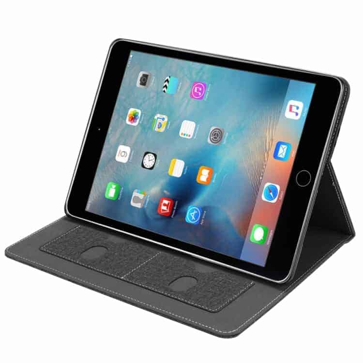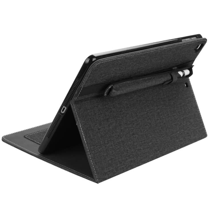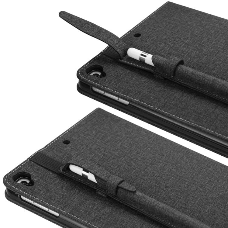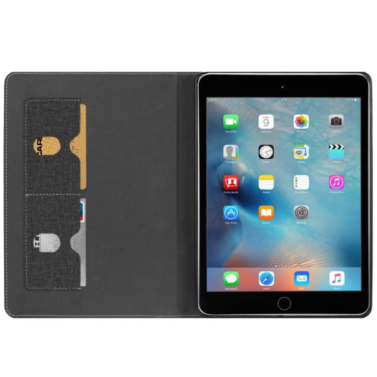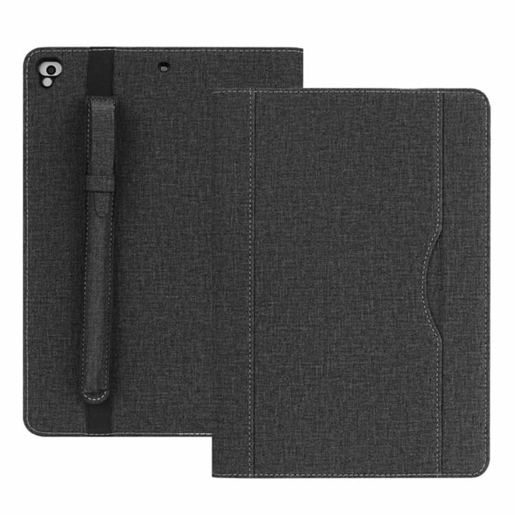 PU Case for iPad 9.7 inch (2018) & (2017) & (2016) & iPad Air 2 & iPad Air, Cloth Pattern Case with Card Slot & Pen Groove (Black)