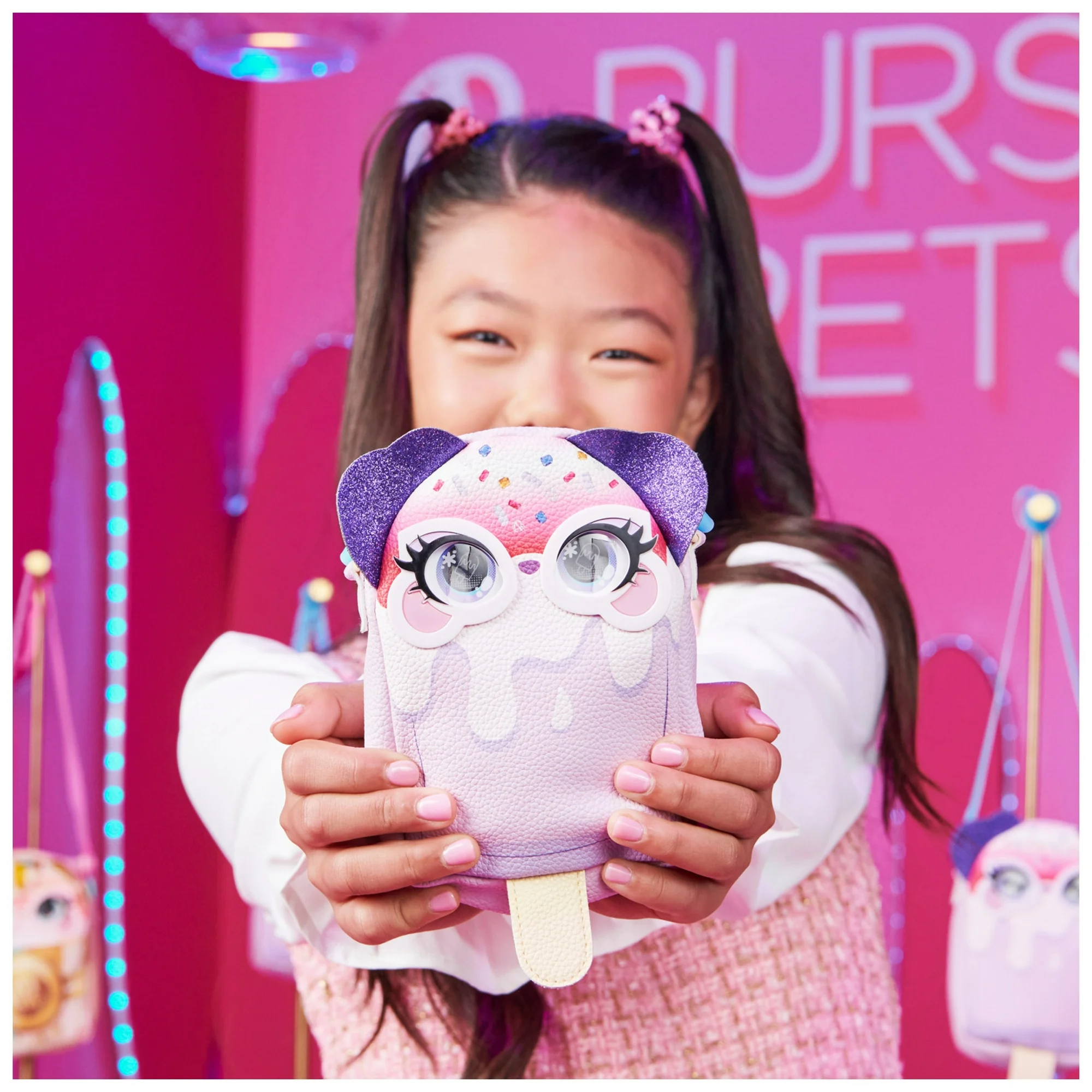 • INTERACTIVE PET AND KIDS PURSE: Pupsicle’s unique mashup look, pebbled faux leather, glitter ears, pop art eyes, jelly strap and vertical shape make this Purse Pets kawaii purse the ultimate pet and fashion accessory! Does not blink.