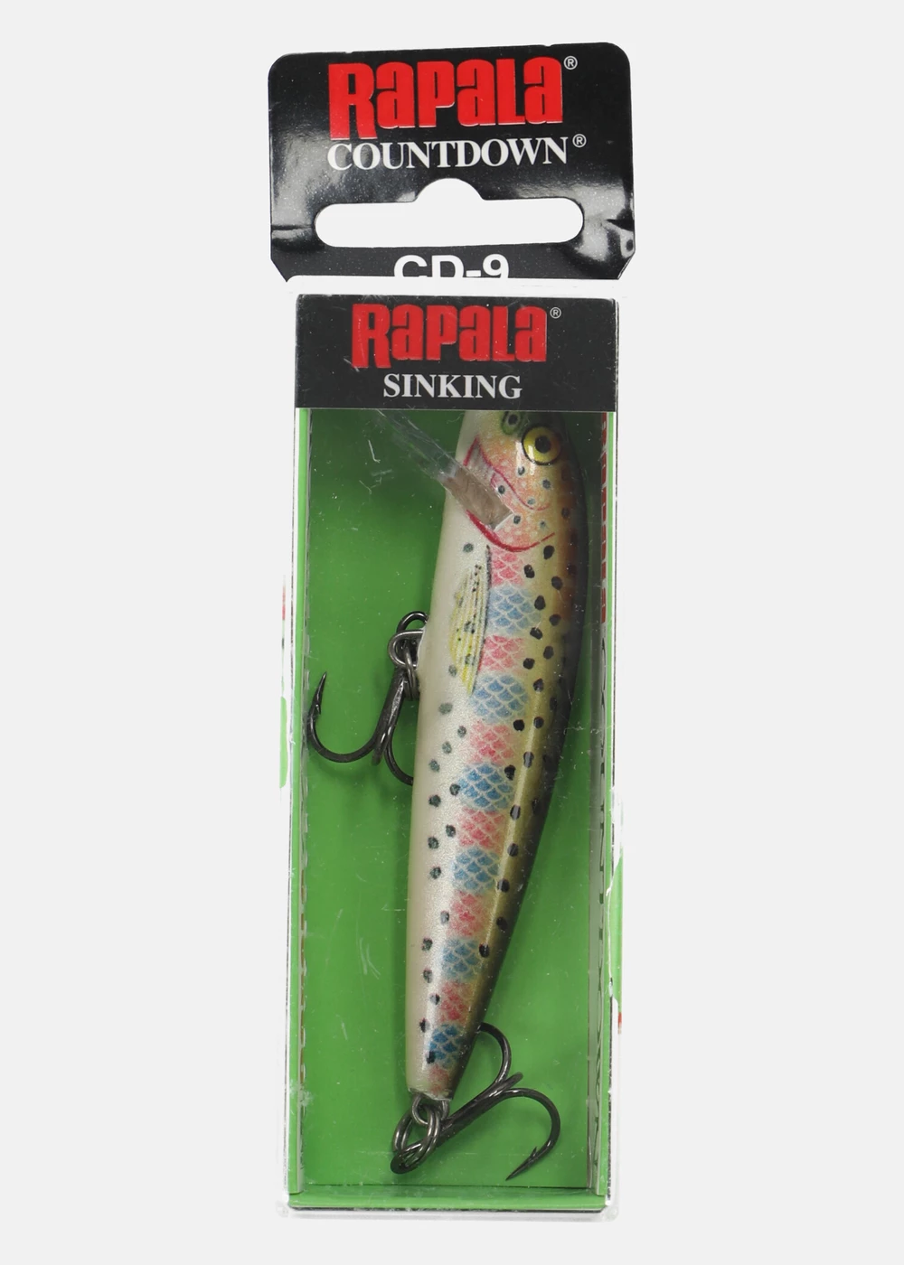 ‎1 x Rapala CountDown Lure with Two No. 7 Hooks, 1.5-2.4 m Swimming Depth, 9 cm Size, Balsa Juvenile Rainbow Trout