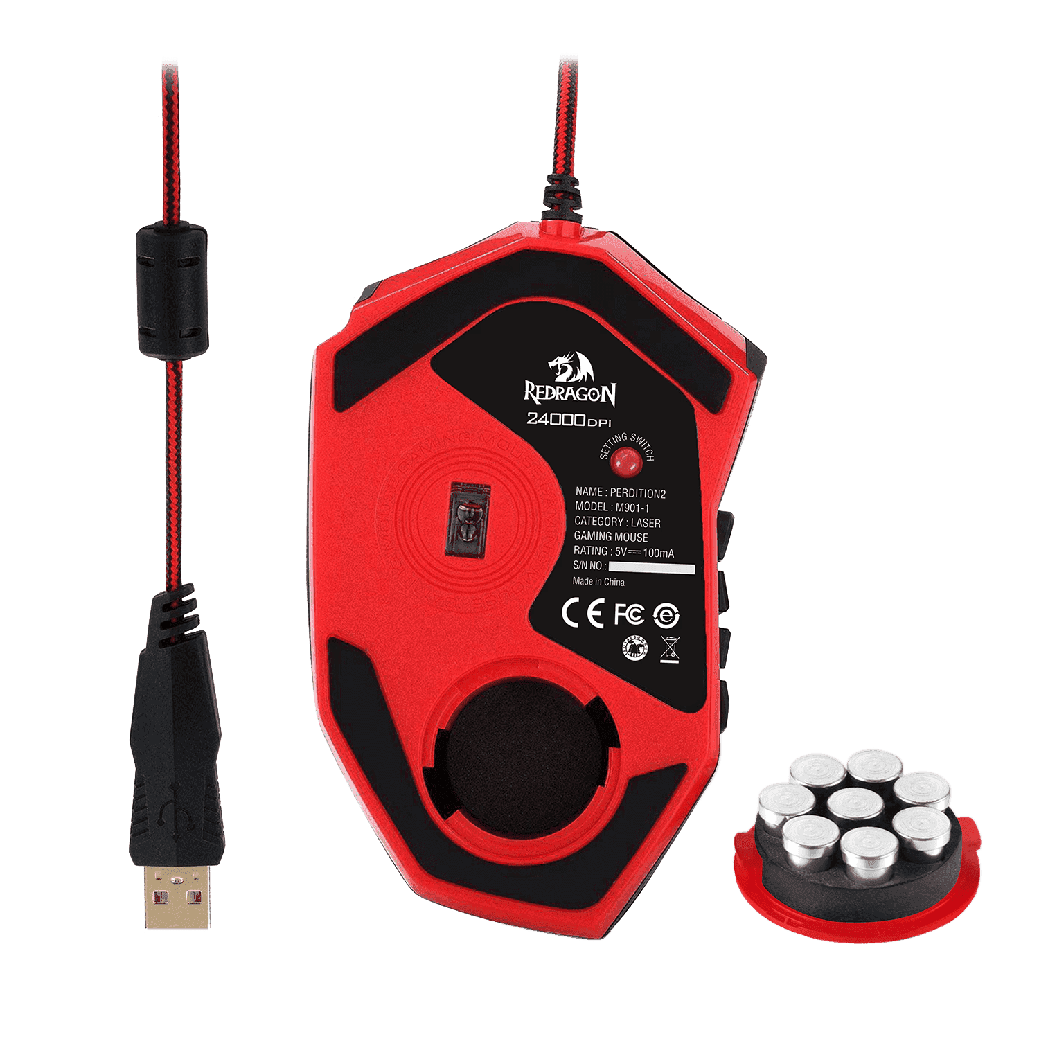 Redragon M901 Perdition 24000DPI MMO Mouse LED RGB Wired Gaming Mouse(Black)