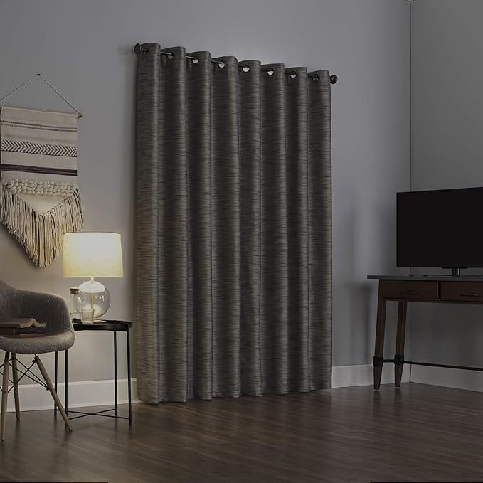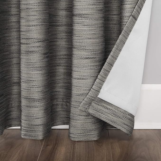 Sun Zero Rhett Woven Strié Theater Grade Extreme Total Blackout Grommet Curtain Panel, 52″ x 84″, Charcoal/Gray